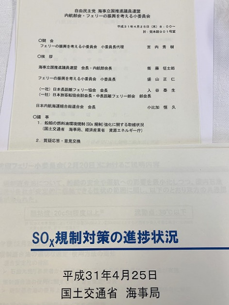 自民党 海事立国推進議員連盟・フェリーの振興を考える小委員会