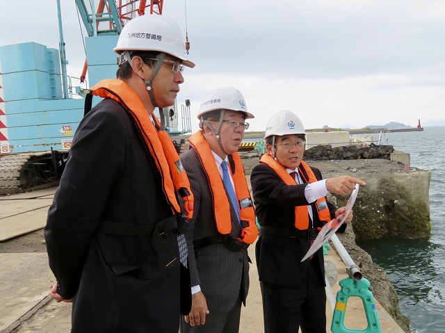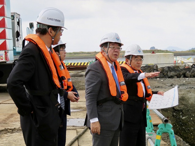 工事中のクルーズ客船専用岸壁を視察(八代外港)