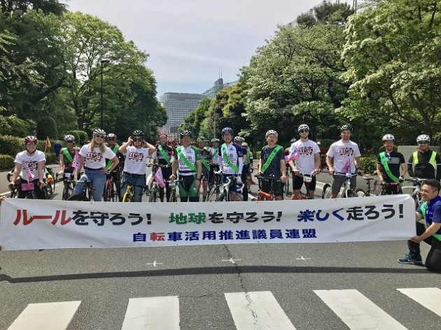 「自転車の日」記念行事 『サイクルドリームフェスタ 2019』 ①パレード前 挨拶・記念撮影 (明治神宮外苑 聖徳記念絵画館前) ※超党派「自転車活用推進議員連盟」幹事長