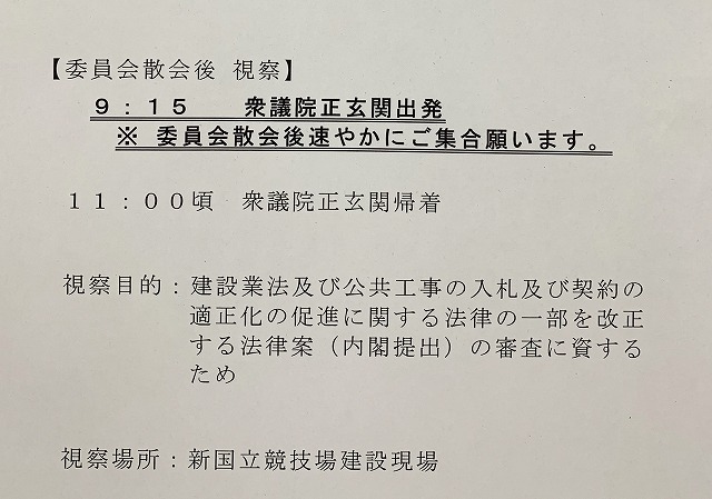 衆議院国土交通委員会「法案審査に資する建設現場視察(新国立競技場)」 ※与党筆頭理事
