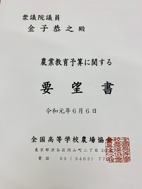 全国高等学校農場協会〔熊本県内の農業高校 代表者〕要望来室