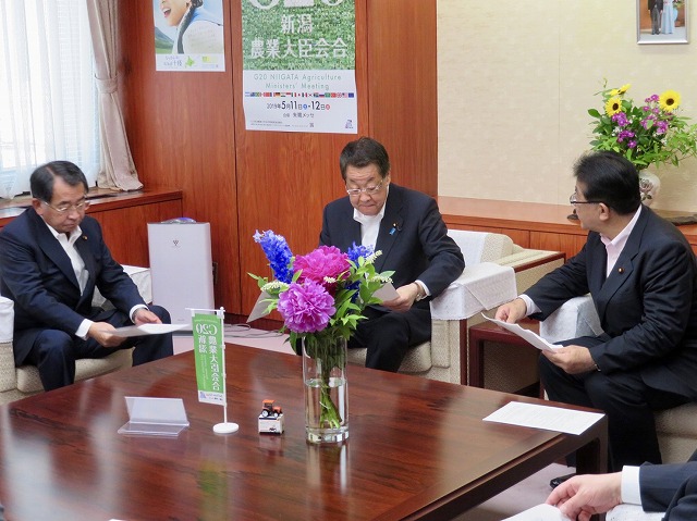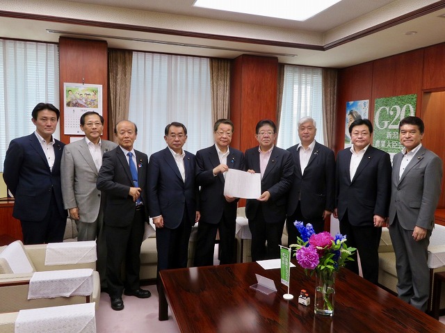 自民党 農林・食料戦略調査会、農林部会、林政対策委員会「森林・林業・木材産業政策の更なる推進について 決議」吉川農林水産大臣へ申し入れ(農林水産省・大臣室) ※林政対策委員長