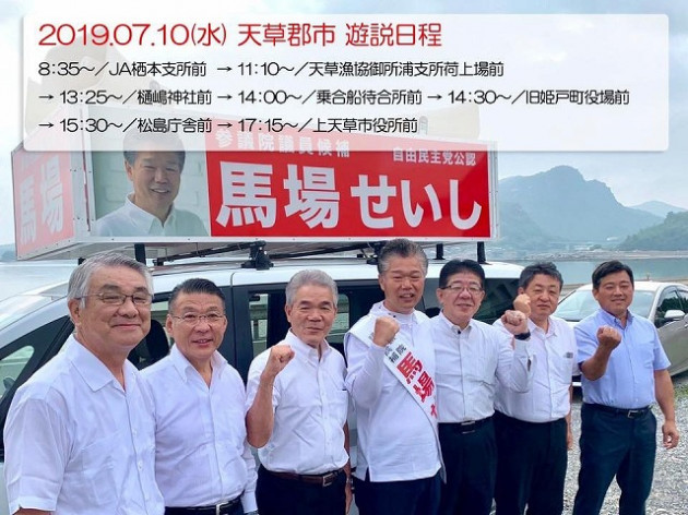 馬場せいし参議院議員候補「遊説〔天草市・上天草市〕」に熊本県第四区選挙長として同行