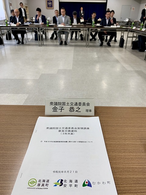 衆議院国土交通委員会 委員派遣「第1日③厚真町・宮坂町長、むかわ町・竹中町長、安平町・村井副町長との意見交換会(厚真町総合福祉センター)」