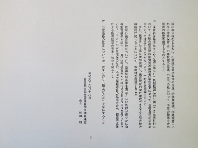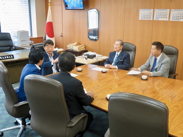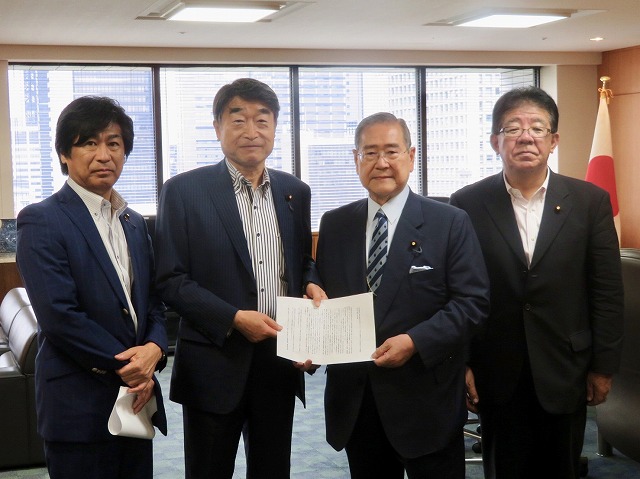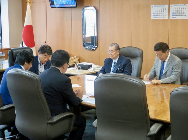 自民党全国保育関係議員連盟「総会における決議」を根本厚生労働大臣へ申し入れ(大臣室) ※野田会長、田村幹事長、衛藤副会長、金子事務局長
