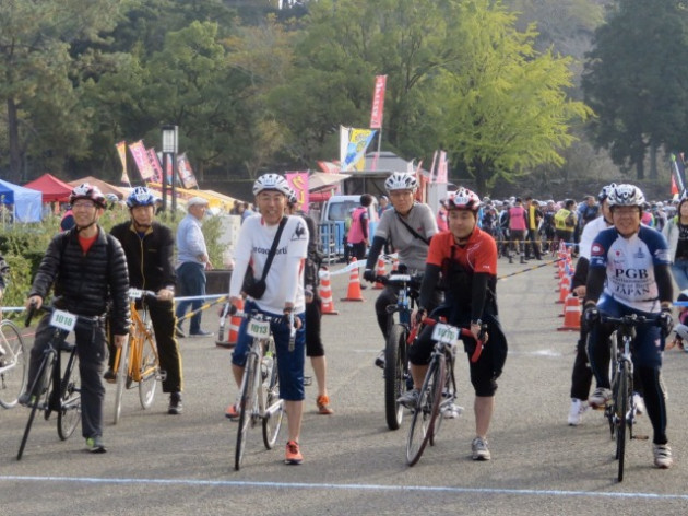 『「日本でもっとも豊かな隠れ里」サイクリング in ひとよし球磨 』ファミリーコース スタート(人吉城跡ふるさと歴史の広場) ※超党派 自転車活用推進議員連盟・幹事長