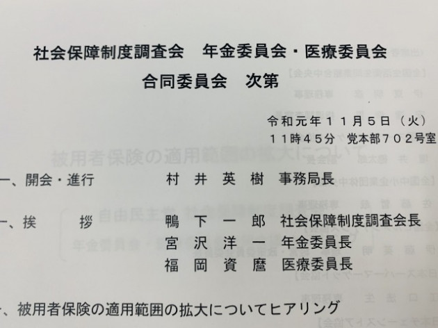 自民党 社会保障制度調査会 年金委員会・医療委員会 合同委員会