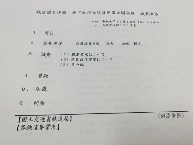 自民党 鉄道議員連盟・地下鉄推進議員連盟 合同会議 ※鉄道議員連盟・副会長