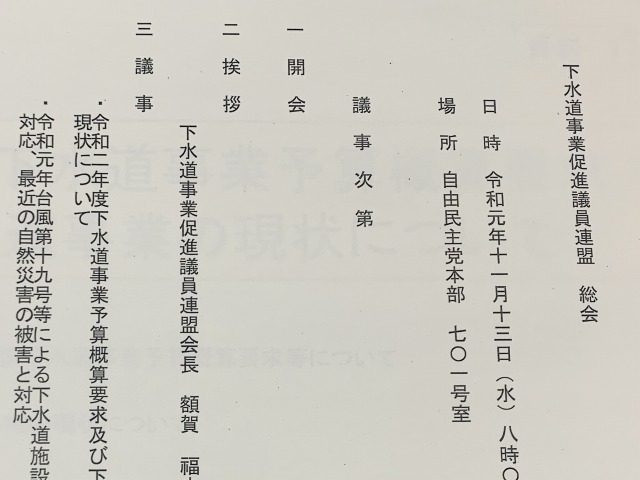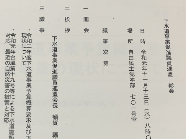 自民党 下水道事業促進議員連盟 総会 ※幹事