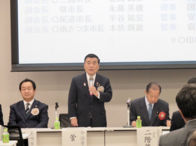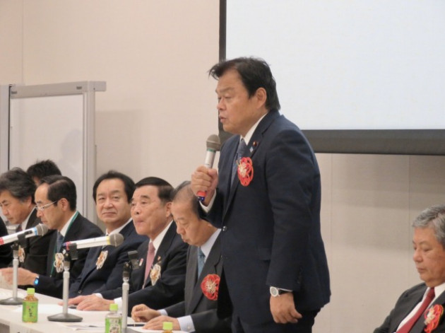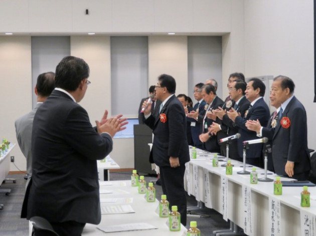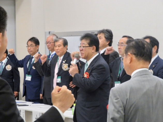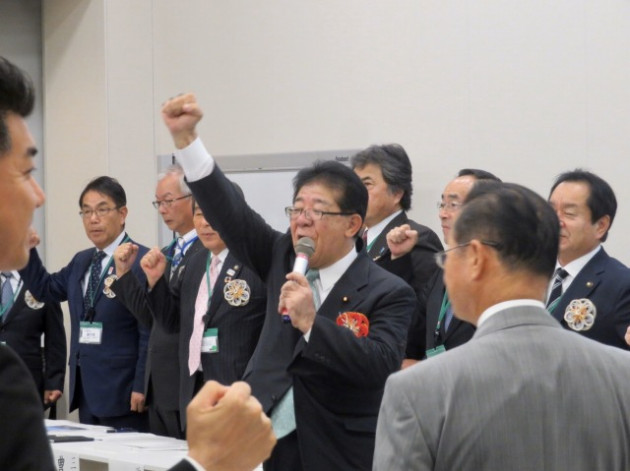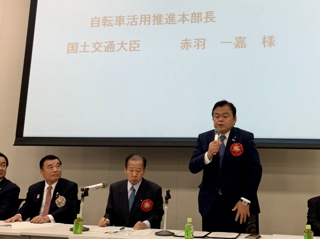 自転車を活用したまちづくりを推進する全国市区町村長の会「令和元年度総会」(衆議院第一議員会館・大会議室) ※超党派 自転車活用推進議員連盟・幹事長として出席、頑張ろう三唱 音頭