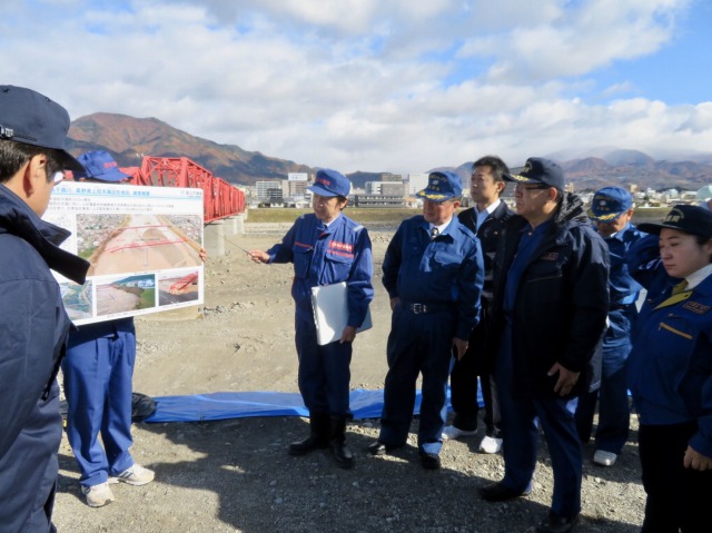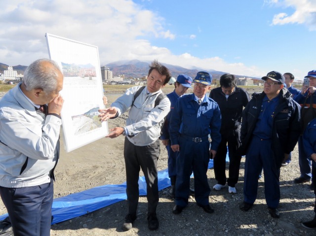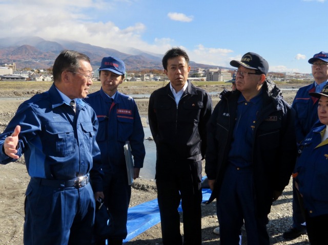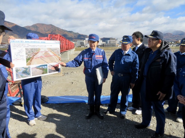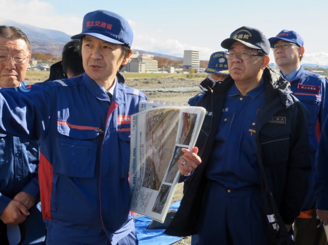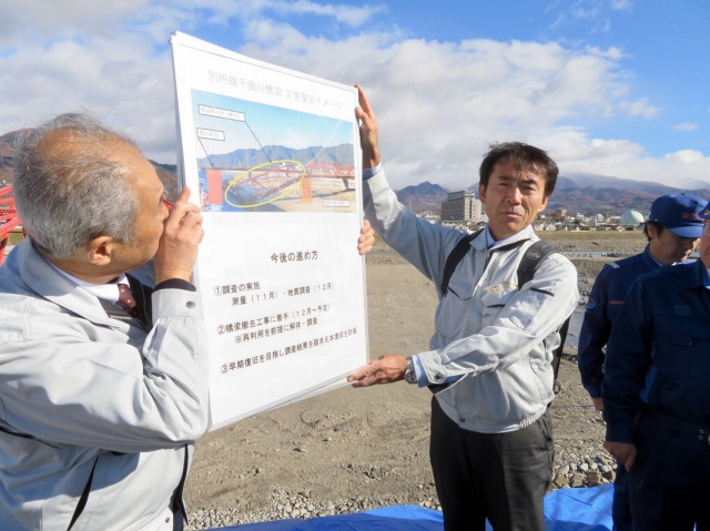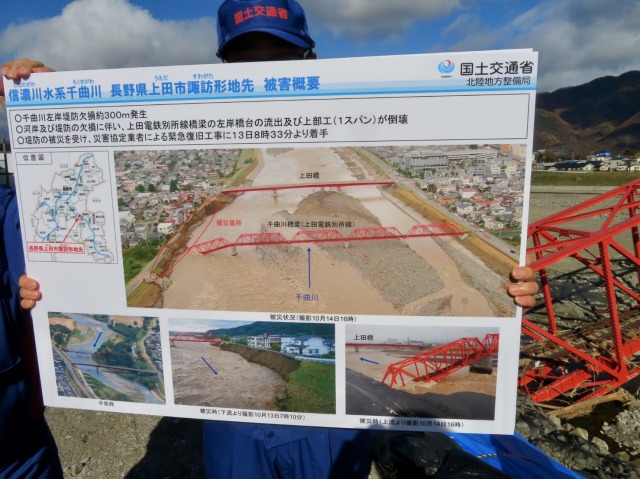 衆議院国土交通委員会「被災地現地視察(長野県)」①上田電鉄橋梁、千曲川堤防(上田市諏訪形地区) ※与党筆頭理事