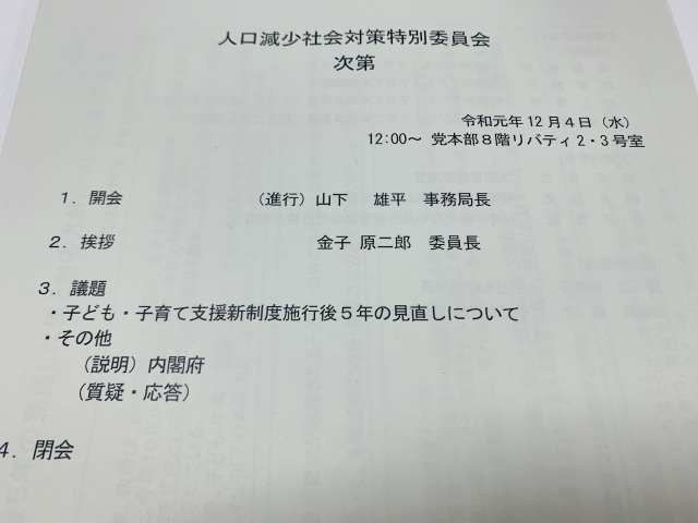 自民党 人口減少社会対策特別委員会 ※副委員長