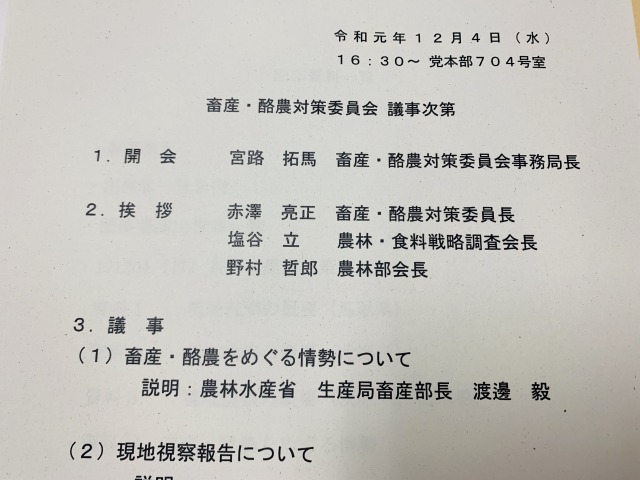 自民党 畜産・酪農対策委員会