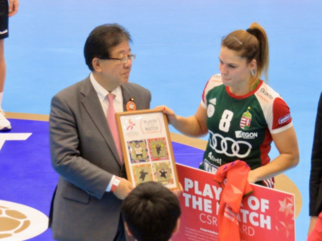 女子ハンドボール世界選手権大会「ルーマニア VS ハンガリー戦」観戦(八代市総合体育館)