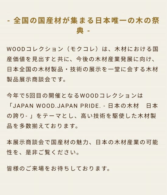 日本の木材 日本の誇り「WOOD Collection(モクコレ)令和元年」(東京ビッグサイト) ※自民党林政対策委員長として視察