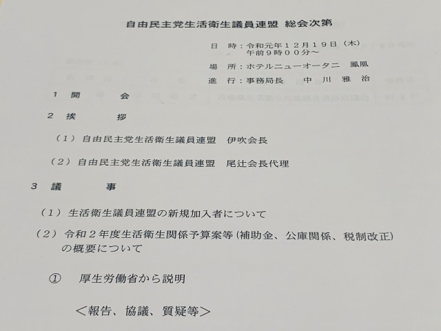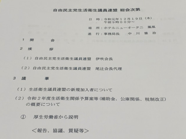 自民党 生活衛生議員連盟 総会