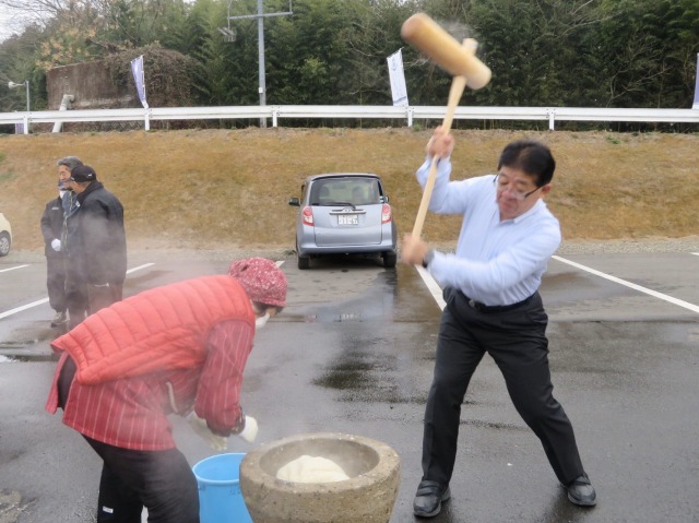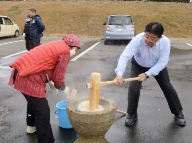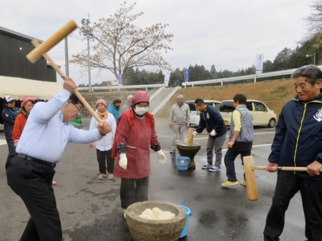 錦まち観光協会「第2回ふるまい 福餅つき」(山の中の海軍の町にしき「ひみつ基地ミュージアム」)