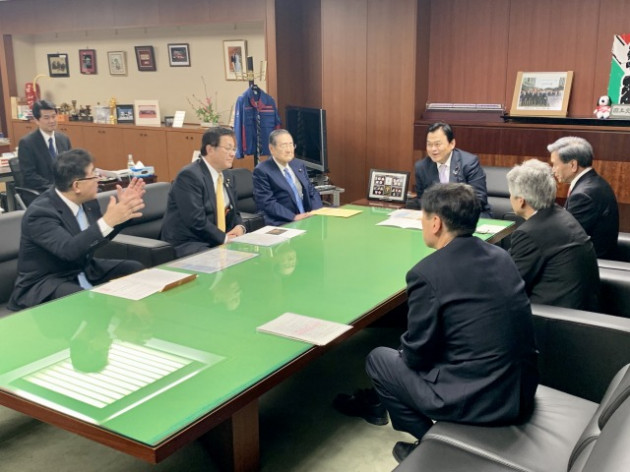熊本県・蒲島郁夫知事、井手順雄議長「復興歩掛・復興係数の導入措置の継続について」赤羽一嘉 国土交通大臣へ要望活動(国土交通省 ・大臣室)へ同席