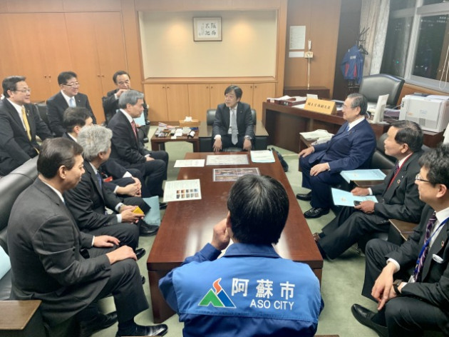 熊本県、熊本県議会、熊本県議会九州横断道路建設促進議員連盟、九州中央自動車道建設促進期成会、中九州・地域高規格道路促進期成会、中九州・地域高規格道路推進期成会「九州中央自動車道 及び 中九州横断道路の早期整備に関する要望」 青木副大臣へ要望活動(国土交通省 ・副大臣室)へ同席