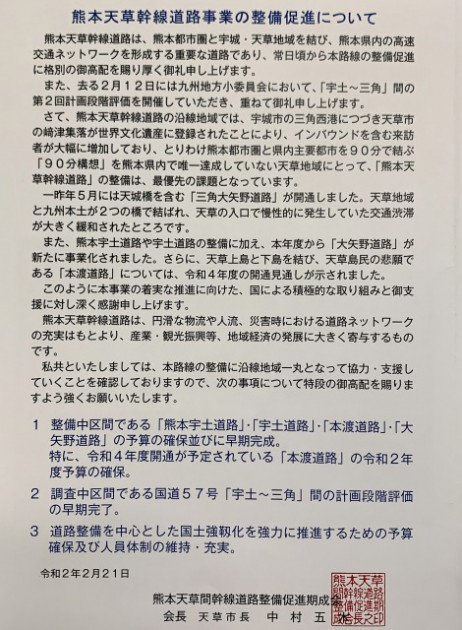 熊本天草間幹線道路整備促進期成会「要望来室」