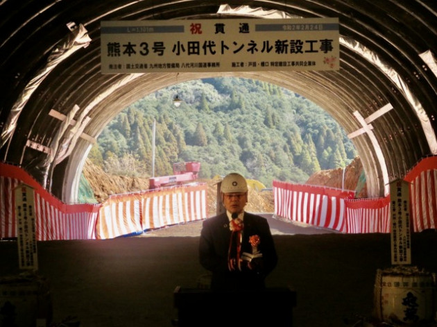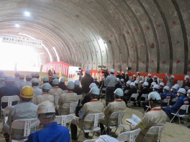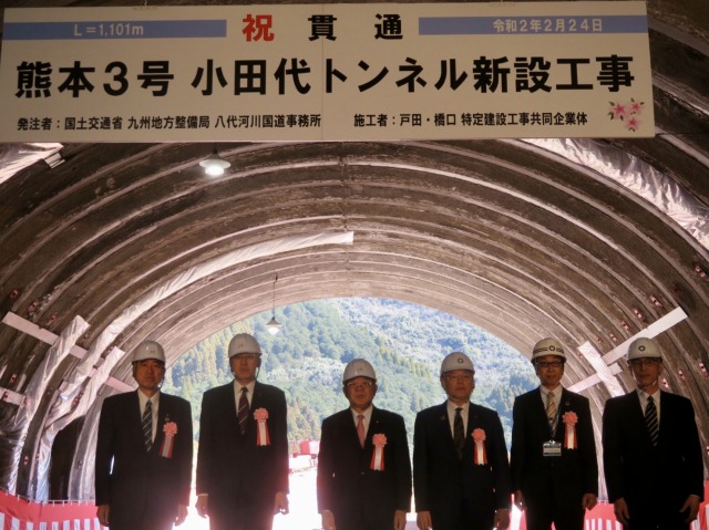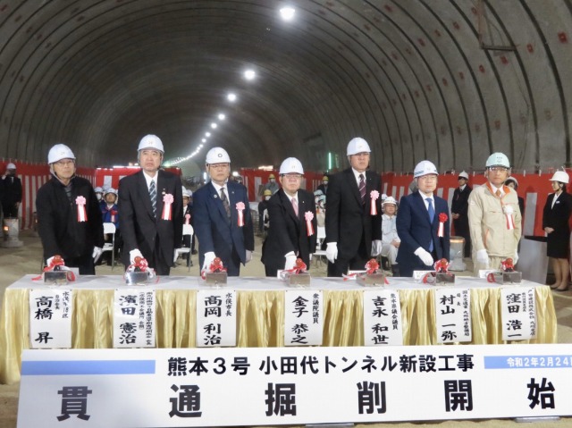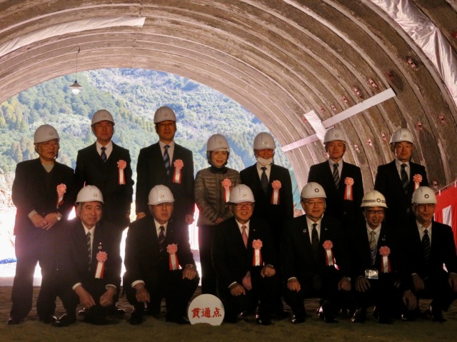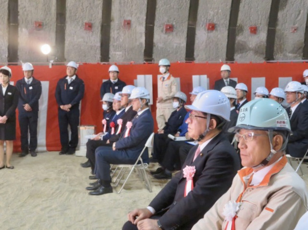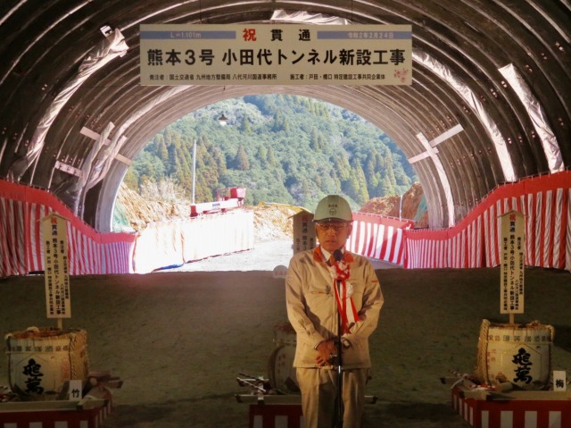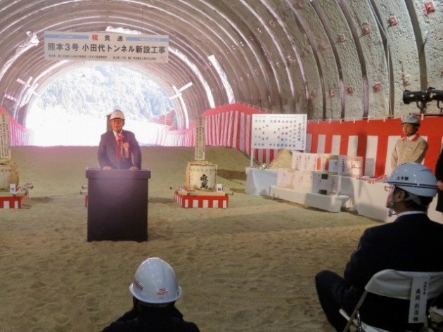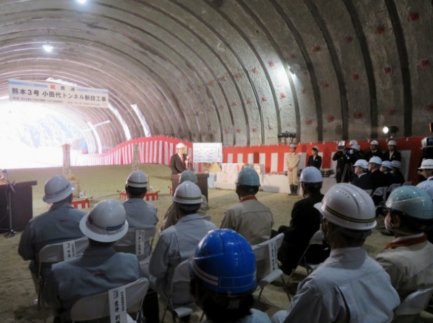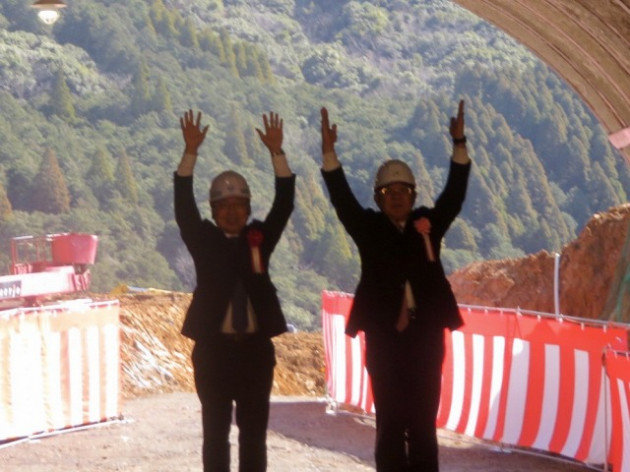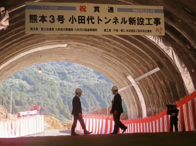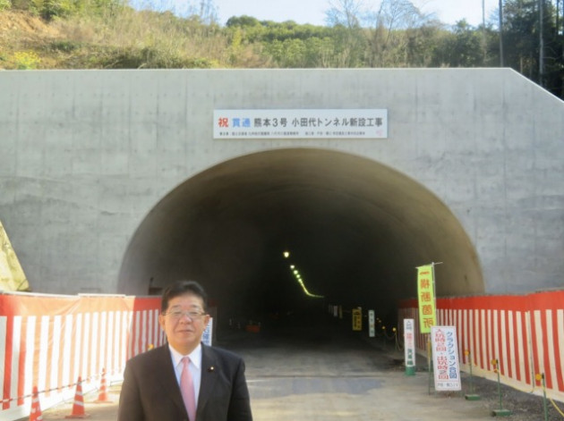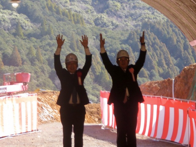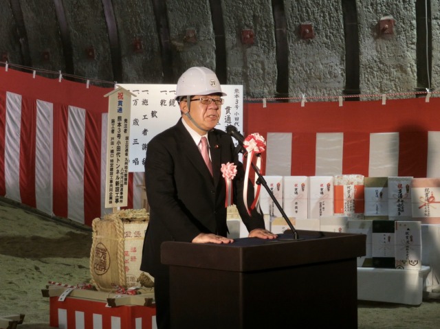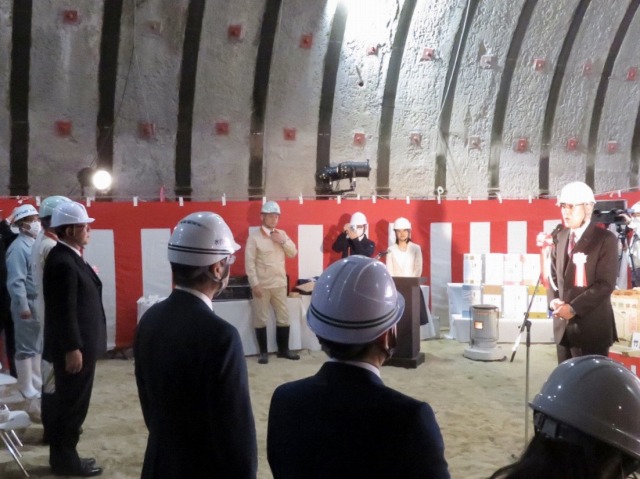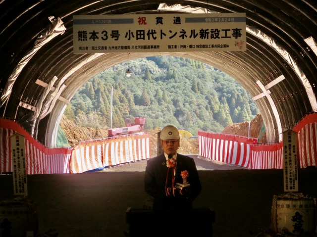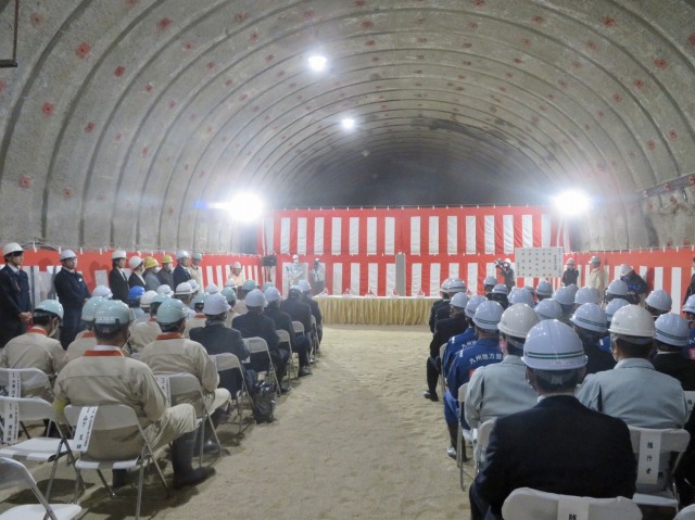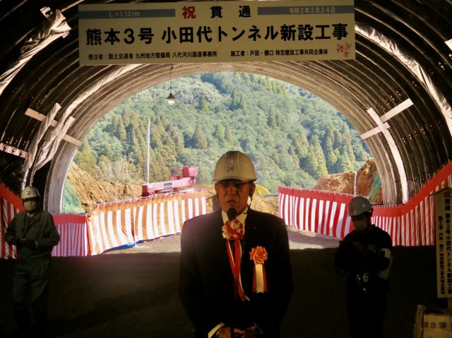 〔南九州西回り自動車道〕芦北出水道路「小田代トンネル 貫通式」(水俣市月浦地内・小田代トンネル坑内)に南九州西回り自動車道建設促進議員連盟・会長として出席