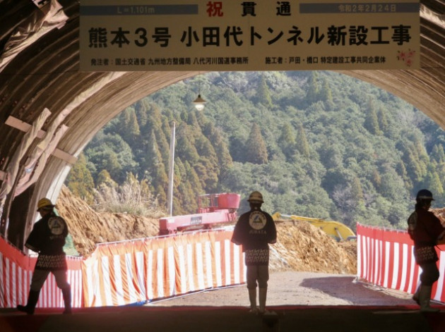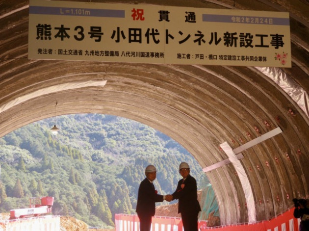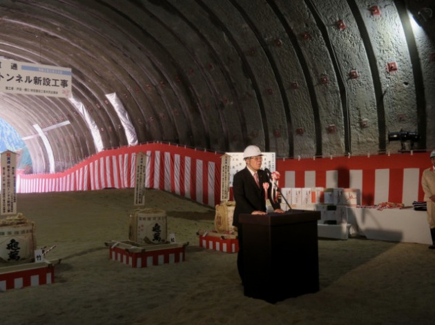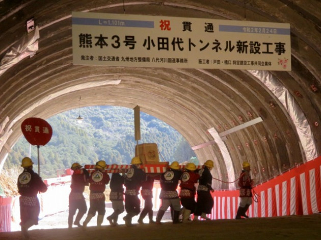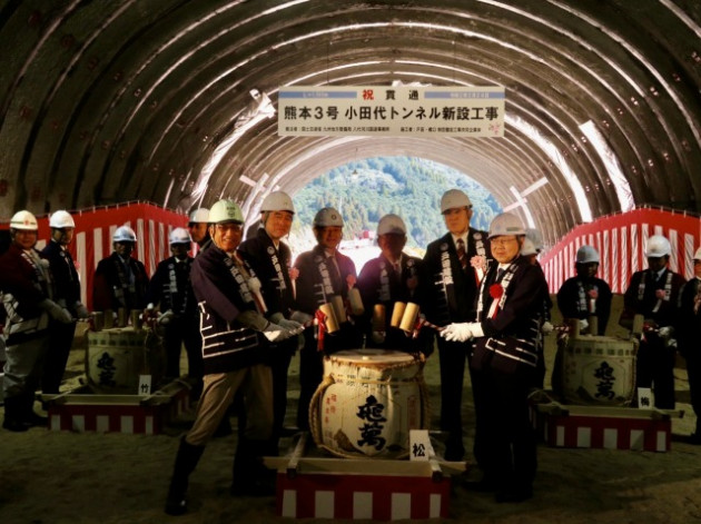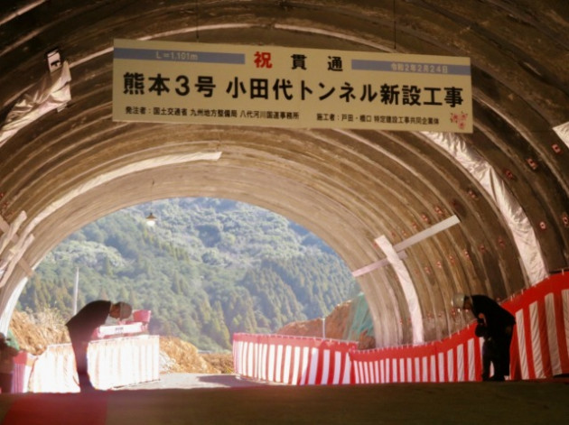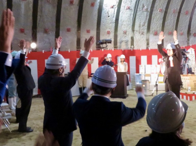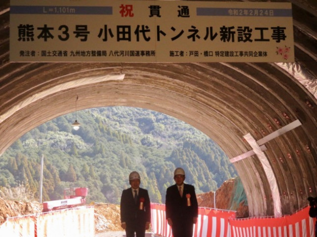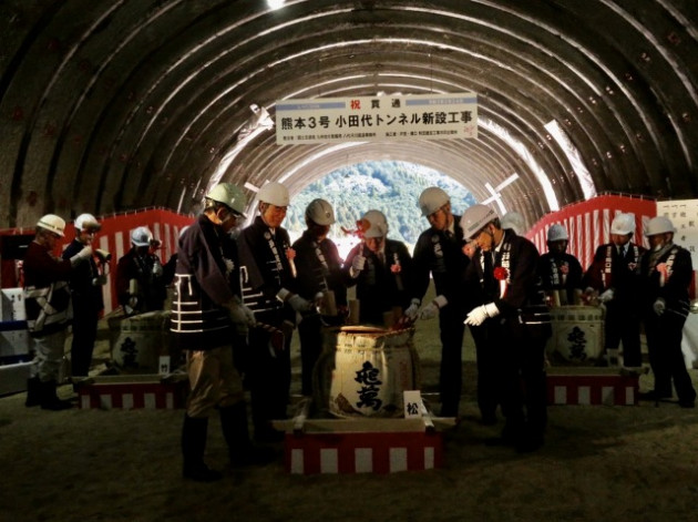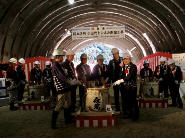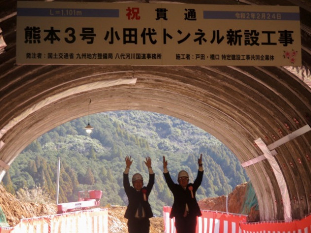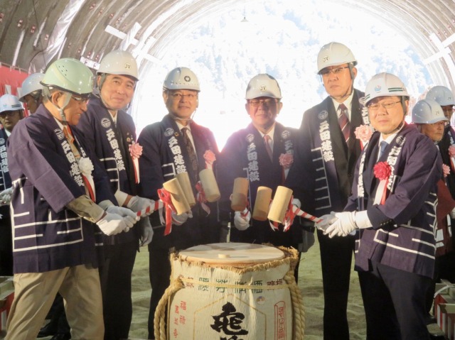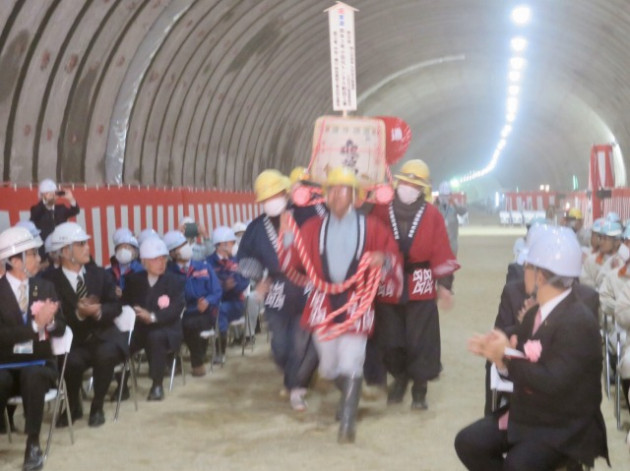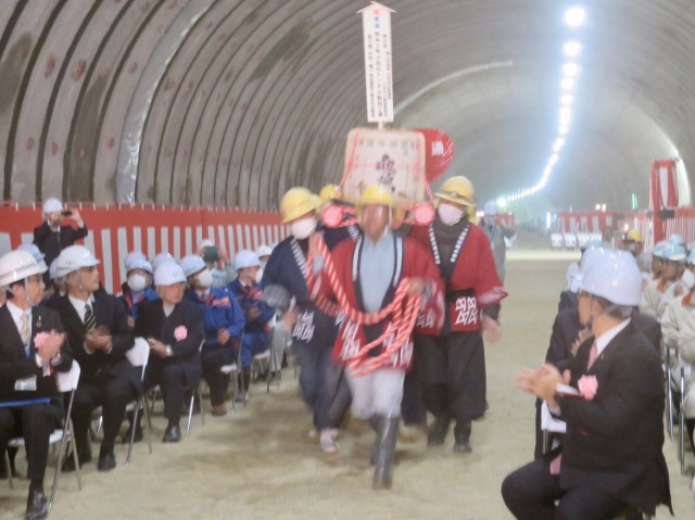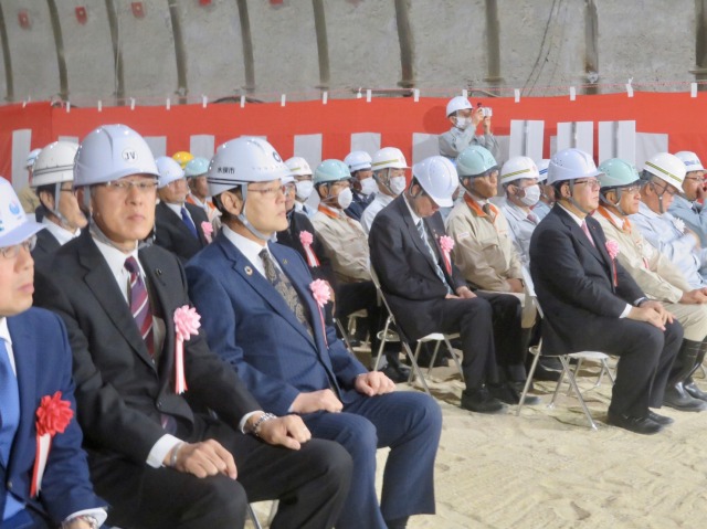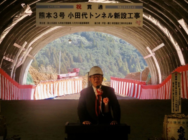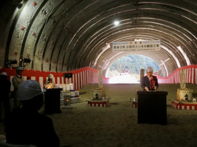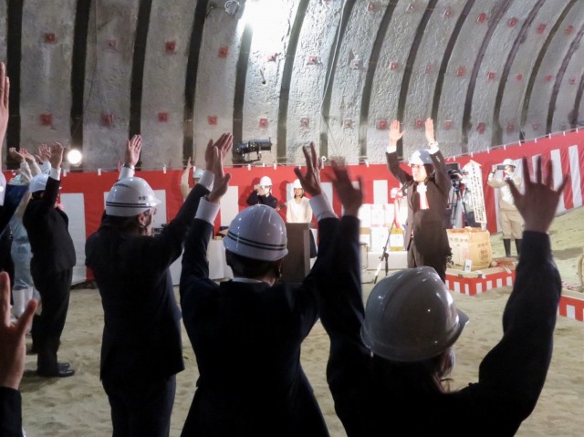 〔南九州西回り自動車道〕芦北出水道路「小田代トンネル 貫通式」(水俣市月浦地内・小田代トンネル坑内)に南九州西回り自動車道建設促進議員連盟・会長として出席