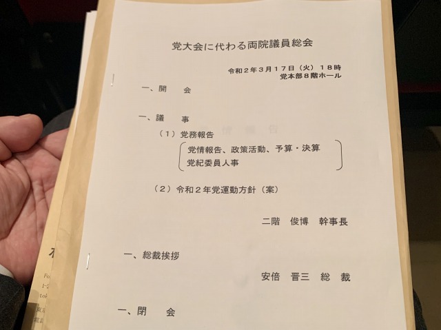 党大会に代わる「自由民主党両院議員総会」(自民党本部・8階ホール)