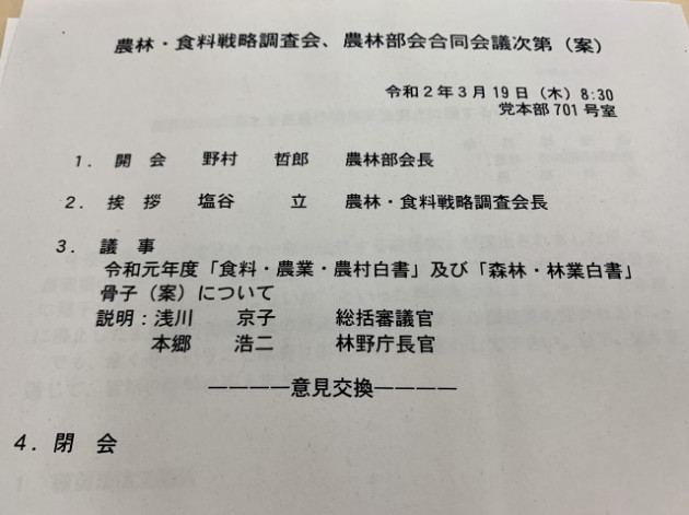 自民党 農林・食料戦略調査会、農林部会 合同会議
