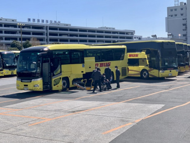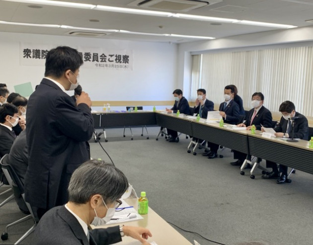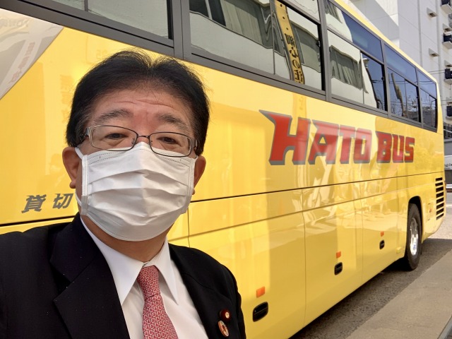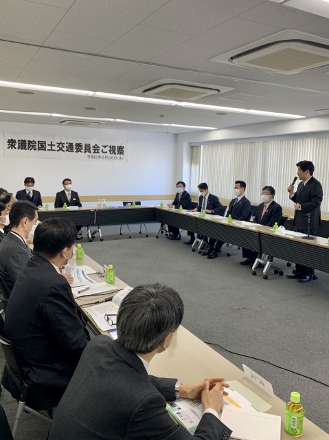 衆議院国土交通委員会「バリアフリー法改正案の審査・新型コロナウイルス対策に関する現場視察②コロナウイルスに係る取組・影響 及び 貸切バス業界の影響説明→車両消毒、点呼実施等視察(はとバス本社営業所)」 ※与党筆頭理事