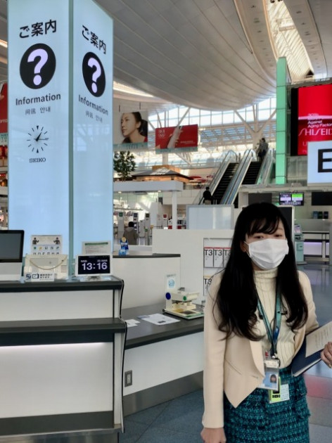 衆議院国土交通委員会「バリアフリー法改正案の審査・新型コロナウイルス対策に関する現場視察⑥案内カウンター視察(羽田空港国際線ターミナル)」 ※与党筆頭理事