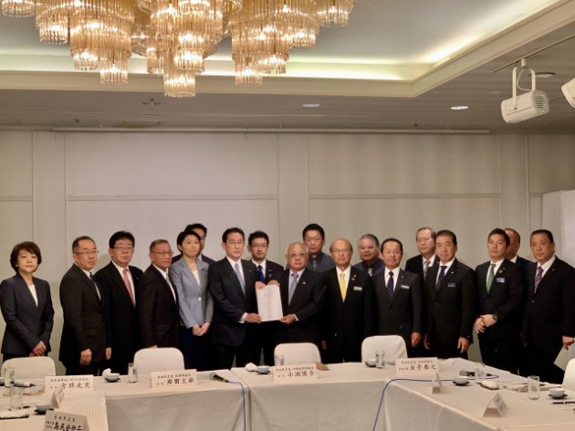 「自民党・岸田文雄 政調会長とチーム沖縄、自民党沖縄県連との意見交換会(那覇市内)」に 小渕優子 沖縄振興調査会長、宮腰光弘 首里城再建に関する委員会 座長と共に政調会長代理として同席