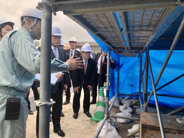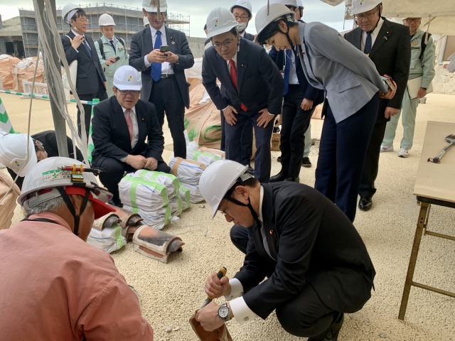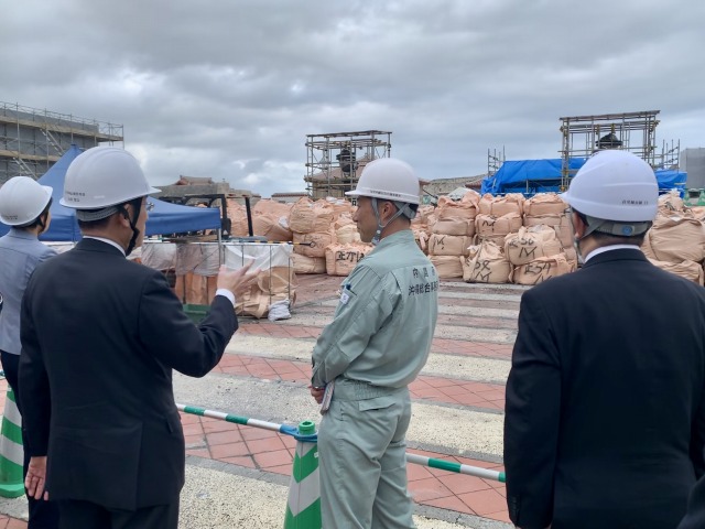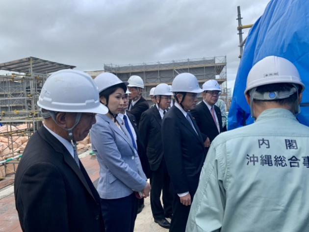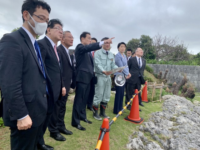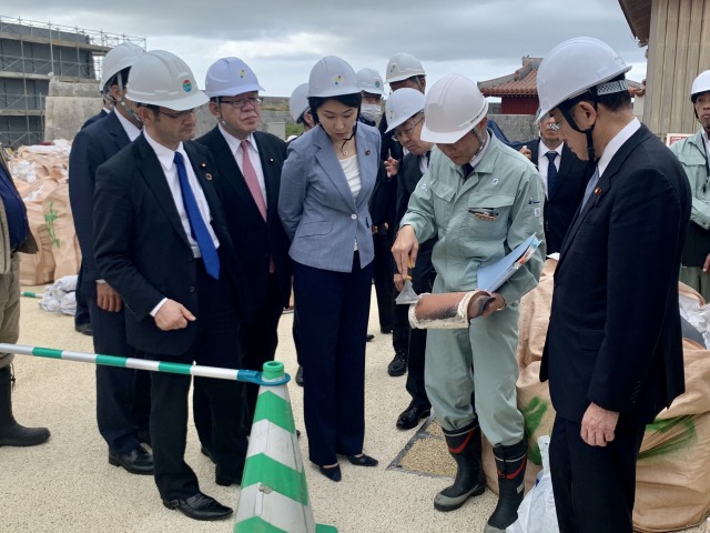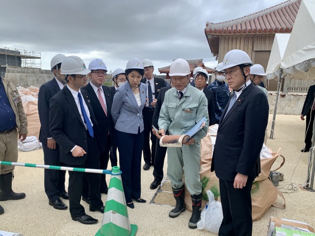 自民党・岸田文雄 政調会長「首里城再建現場」視察に小渕優子 沖縄振興調査会長、宮腰光弘 首里城再建に関する委員会 座長、自民党沖縄県連と共に政調会長代理として同行