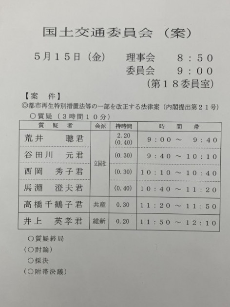 衆議院国土交通委員会「都市再生法 質疑 3時間10分・採決」 ※与党筆頭理事