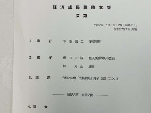 自民党 経済成長戦略本部「令和2年度 成長戦略骨子(案)について」