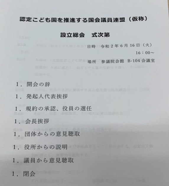 自民党 認定こども園を推進する国会議員連盟「設立総会」