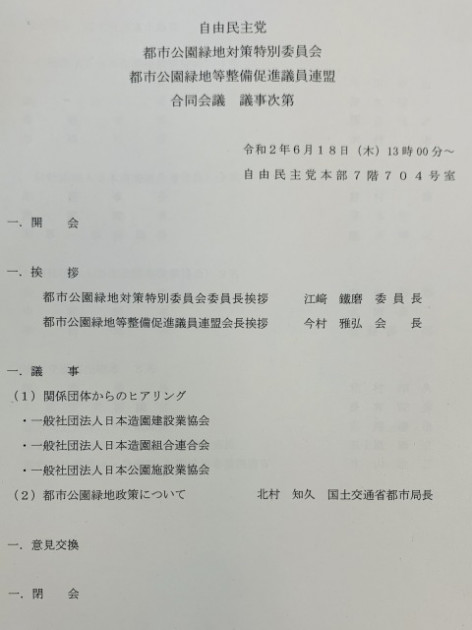 自民党 都市公園緑地対策特別委員会・都市公園緑地等整備促進議員連盟 合同会議