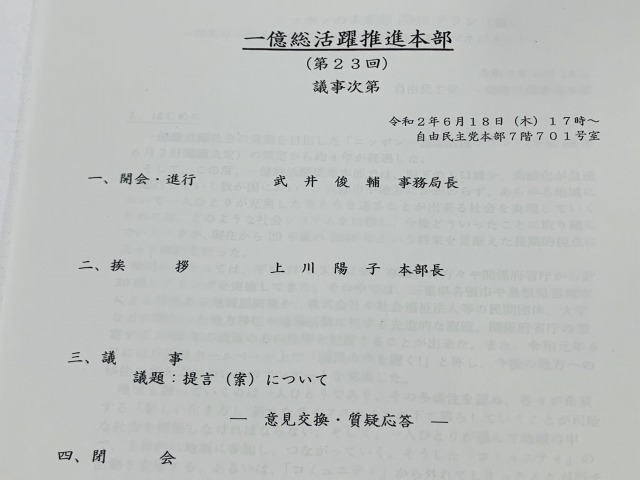 自民党 一億総活躍推進本部