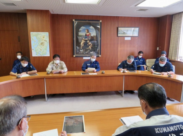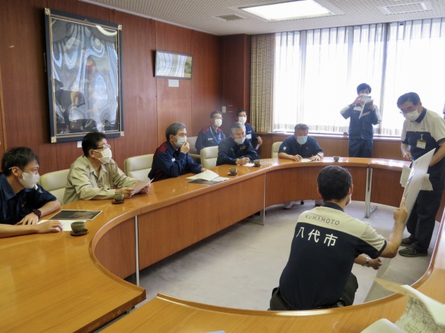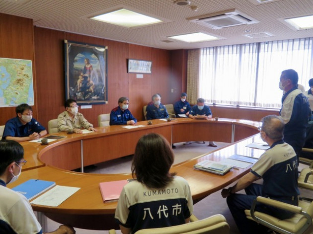 蒲島郁夫熊本県知事「熊本県南部豪雨災害に関して八代市より現況報告聴取」(八代市役所 鏡支所)に同行