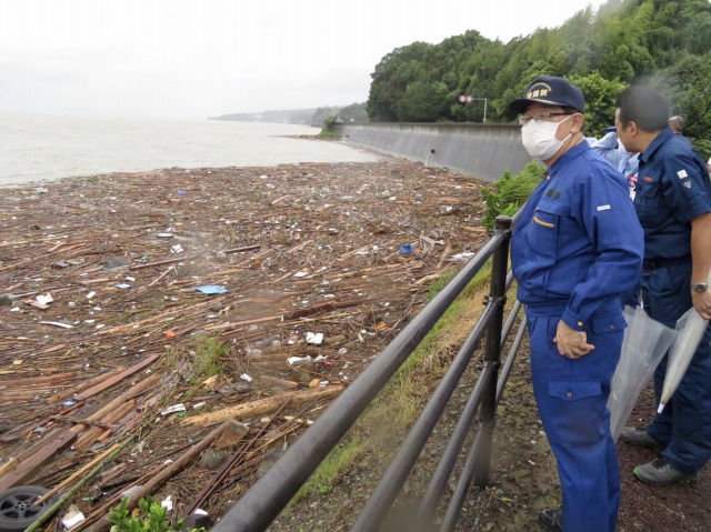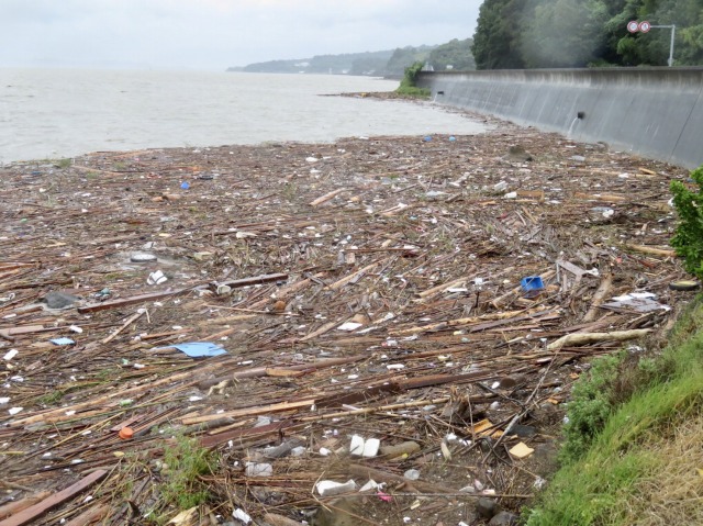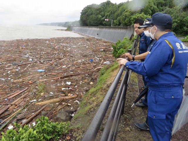 熊本県南部豪雨災害による八代海への漂流物に関する現地視察(宇城市不知火町) ※末松県議、吉田県議 同行