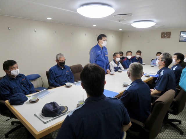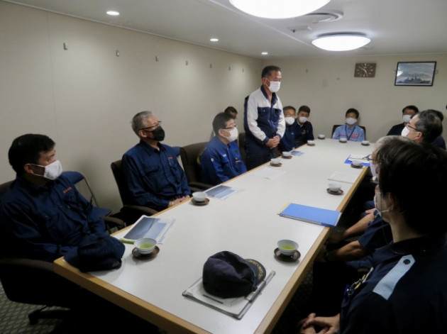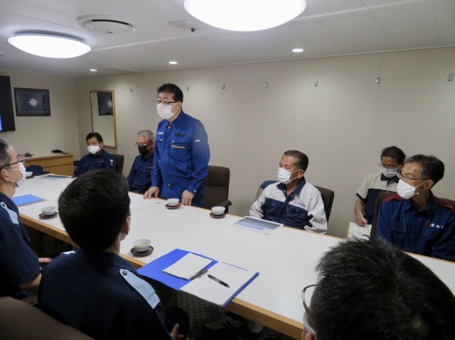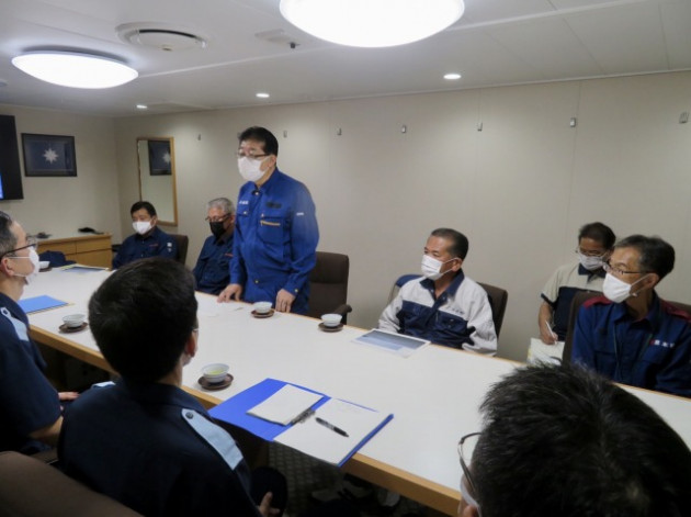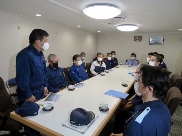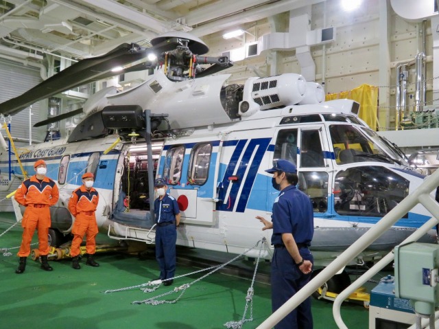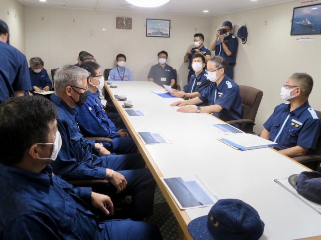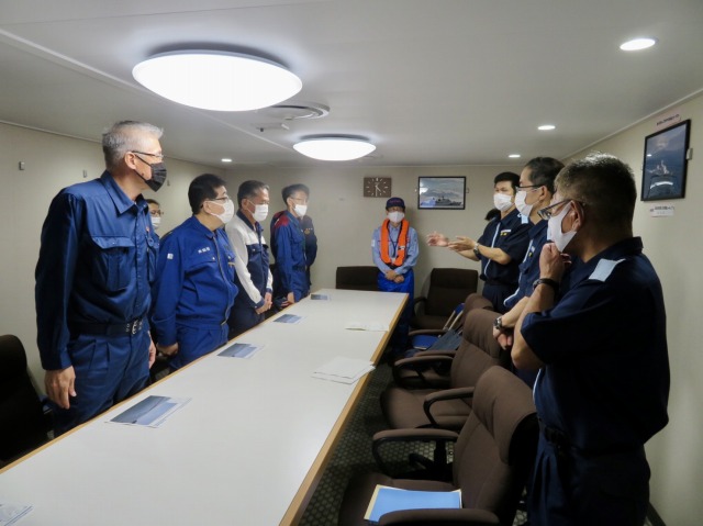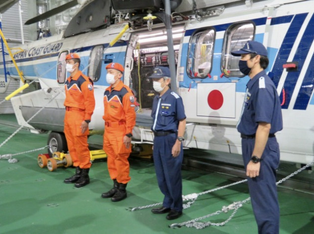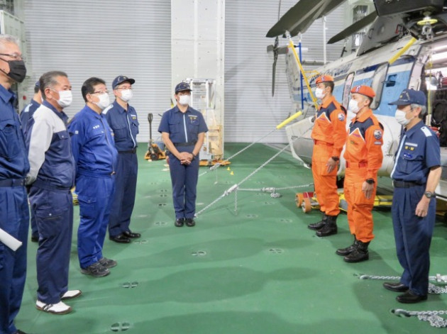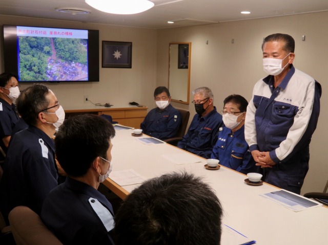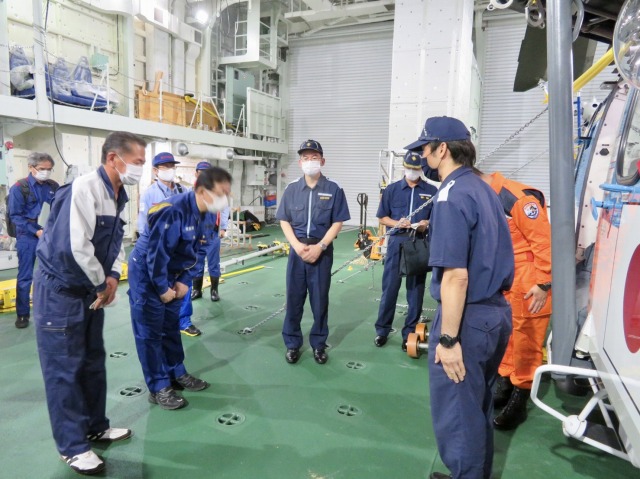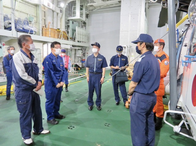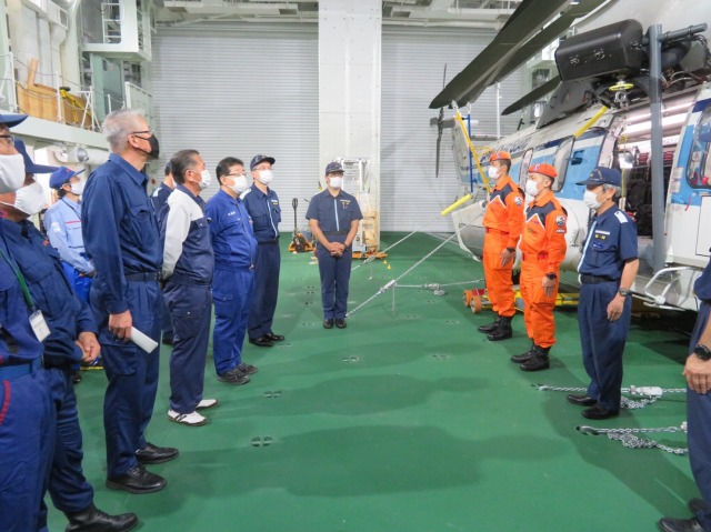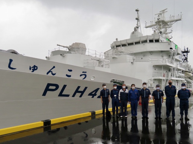 第10管区海上保安本部 ヘリコプター搭載型巡視船「しゅんこう」 八代港入港出迎え〔海上保安議員連盟 副会長〕(八代港) ※豪雨災害救援支援
