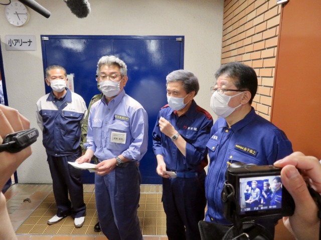 武田良太防災担当大臣「熊本県南部豪雨災害 ぶら下がり取材」(八代トヨオカ地建アリーナ)に同行