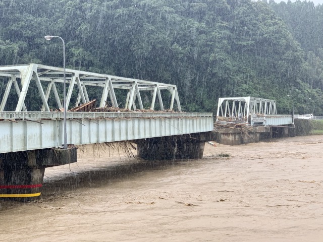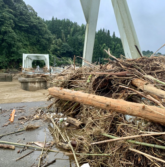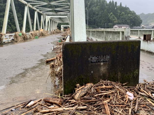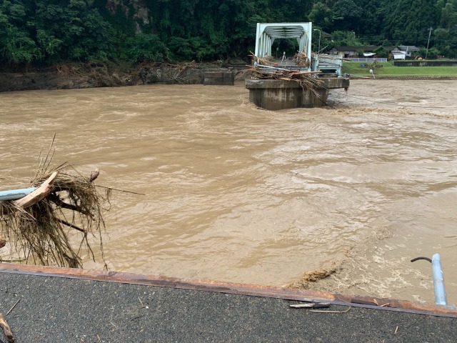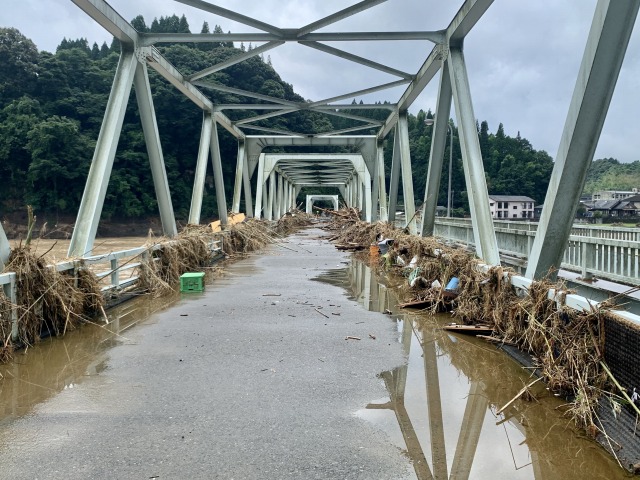 午前中、球磨村災害対策本部・球磨村内 被災状況視察、人吉市災害対策本部・人吉市内 西瀬橋 被災状況視察