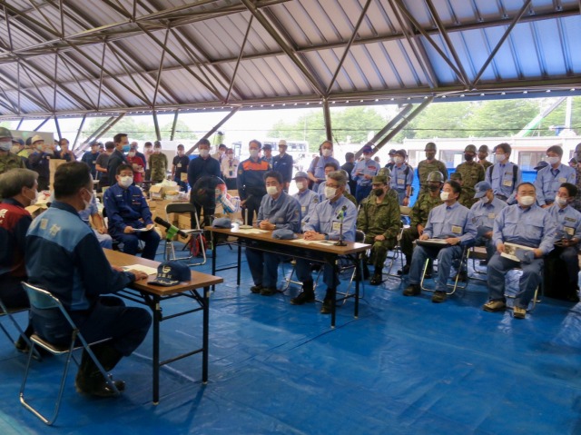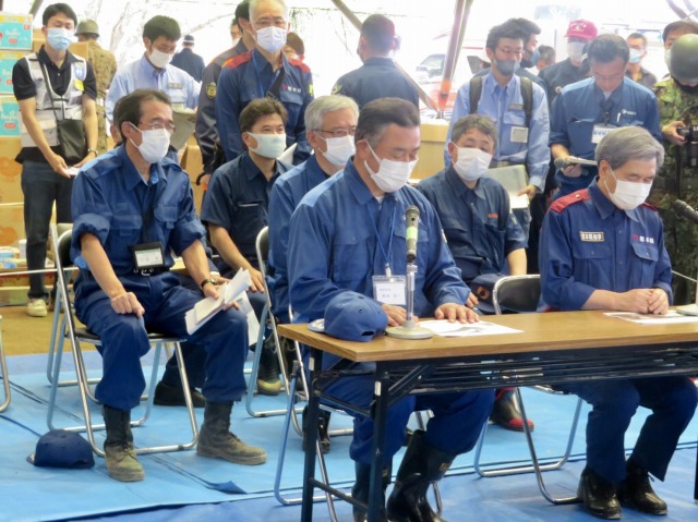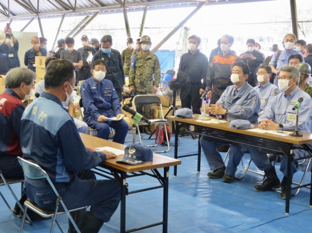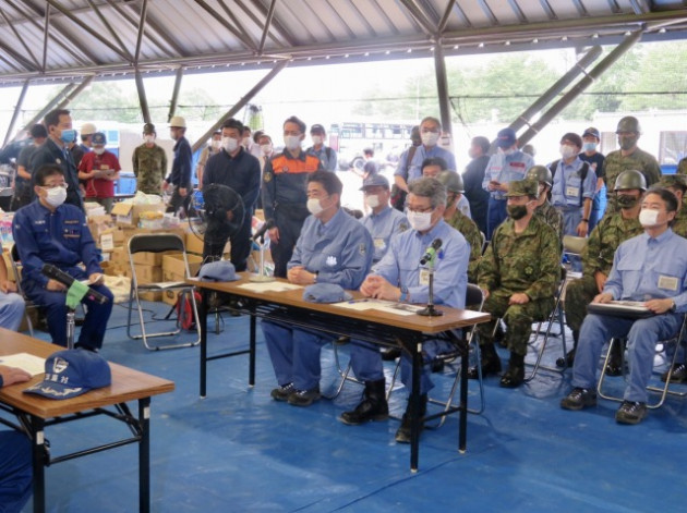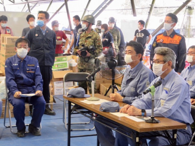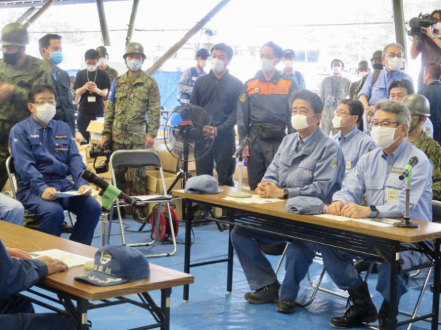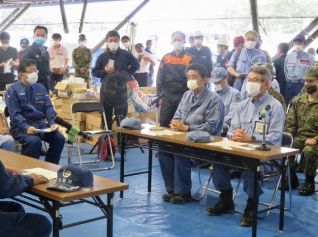 安倍晋三内閣総理大臣「令和2年7月豪雨に係る視察」熊本県知事・球磨村長との意見交換会(球磨村総合運動公園)