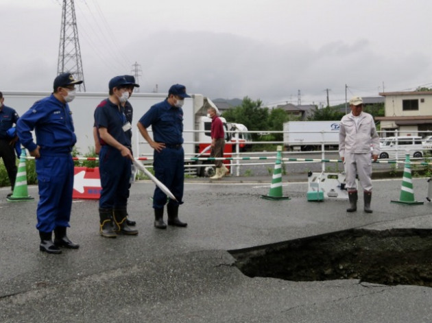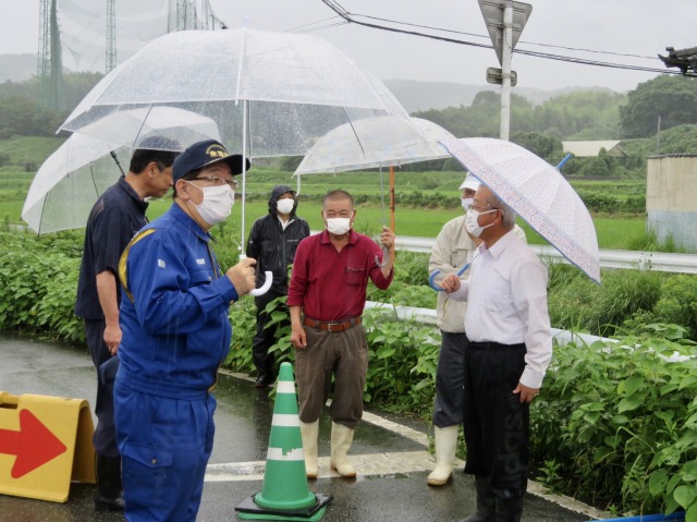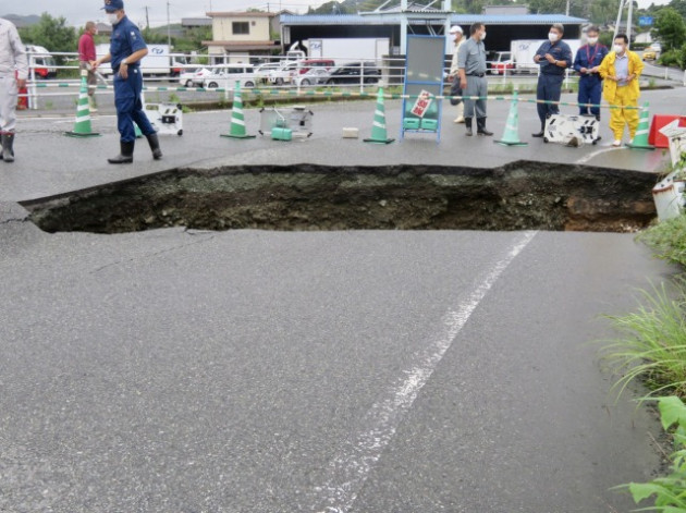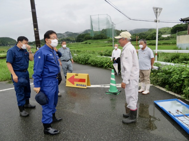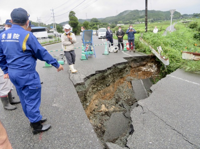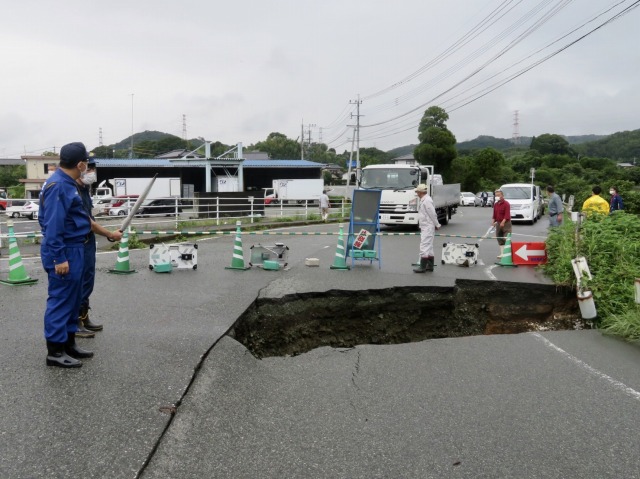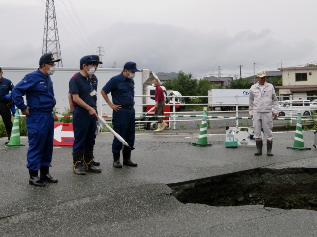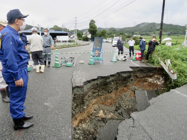 宇城地域振興局管内 災害発生現場視察 ④県道 中小野浦川内線 道路陥没現場(宇城市松橋町)