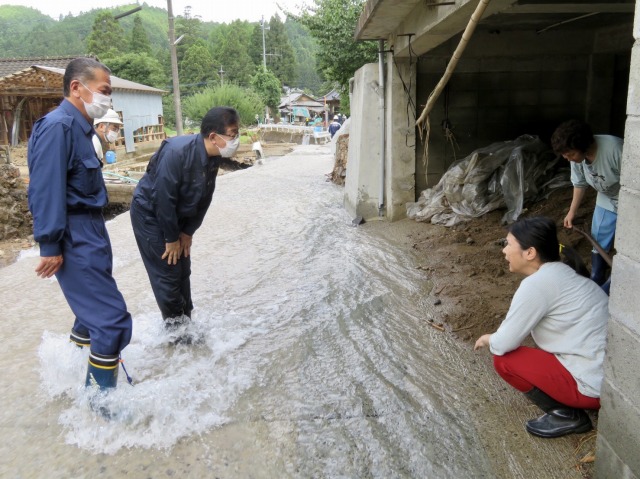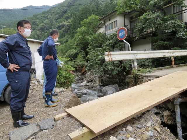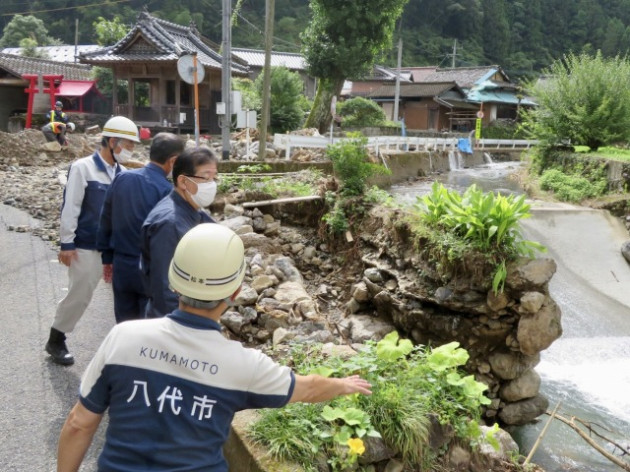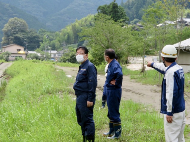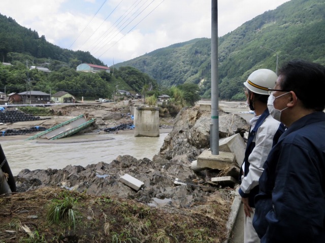午前中、八代市「被災現場(坂本町 百済来〔陣之内地区・板持地区〕、JR九州 球磨川第一橋梁、国道219号 鎌瀬橋、道の駅さかもと)視察」に同行