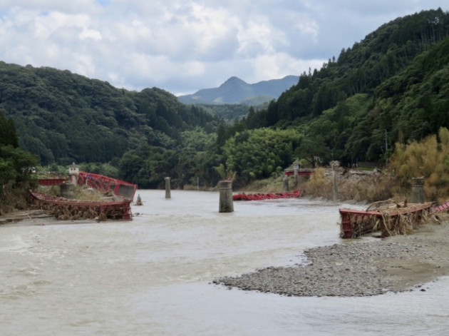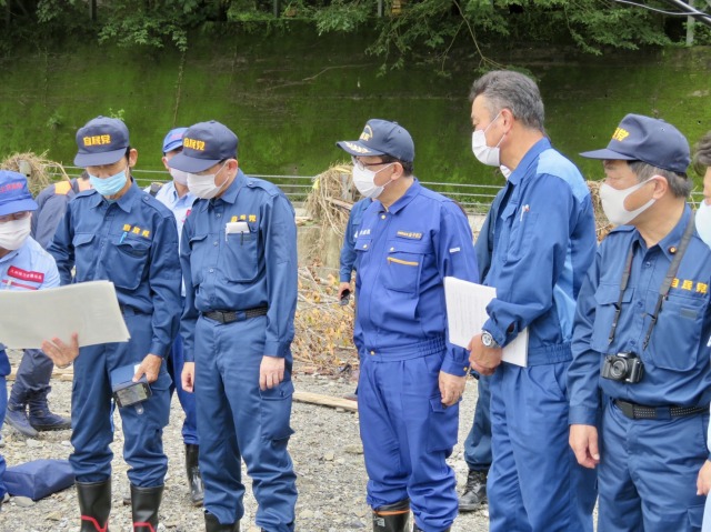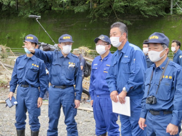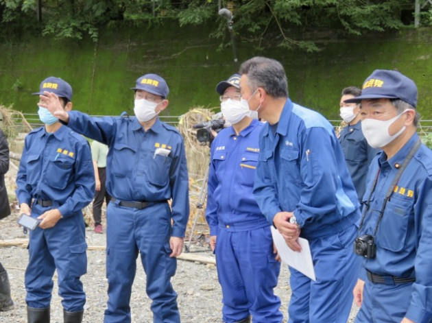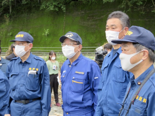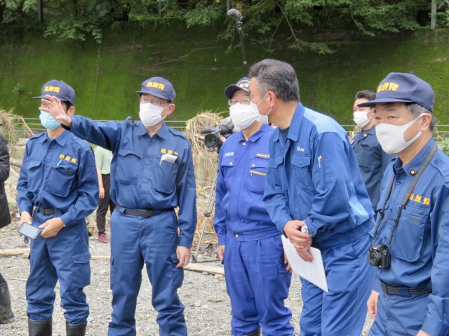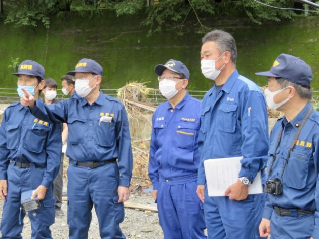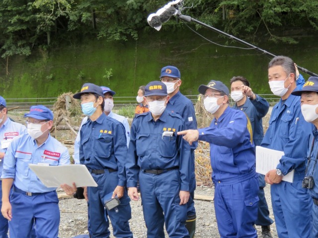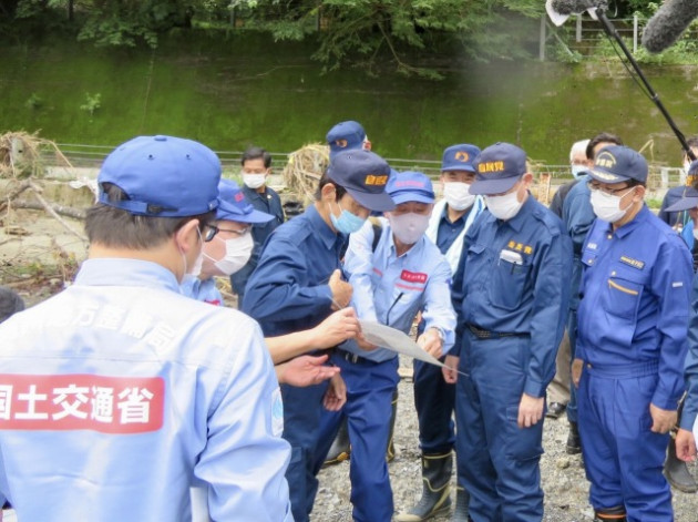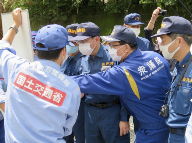 自民党・岸田文雄 政調会長「令和2年豪雨災害 現地視察 第2日 ⑧球磨村 被災箇所 視察」(球磨村渡・温泉くま村湯の駅付近)に同行