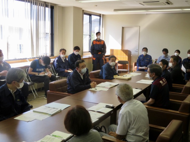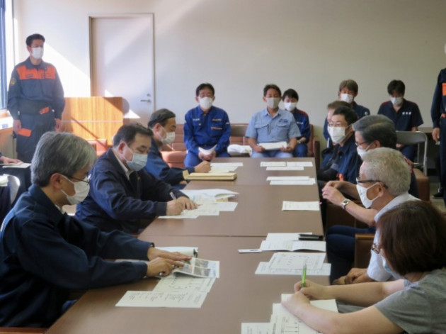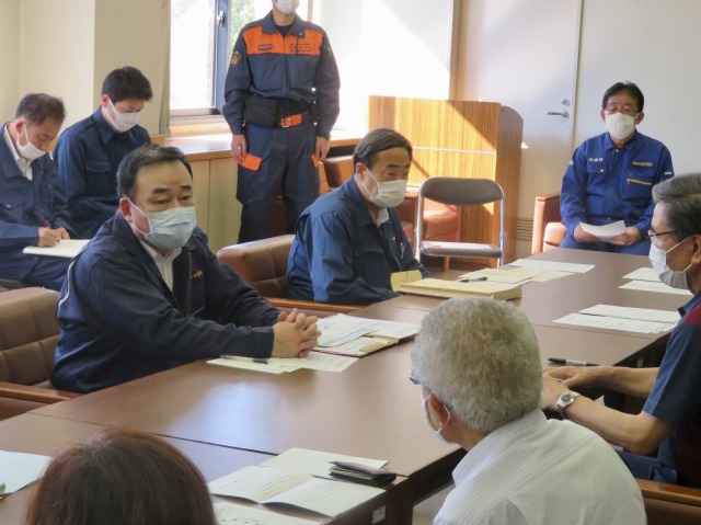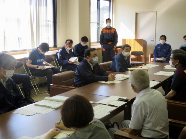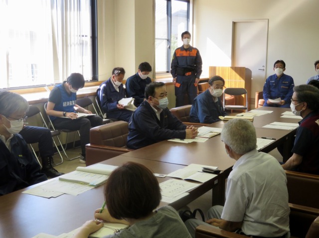 梶山弘志 経済産業大臣「令和2年豪雨災害 現地視察 ④熊本県・人吉市・商工関係者との意見交換会」(人吉市役所)に同行