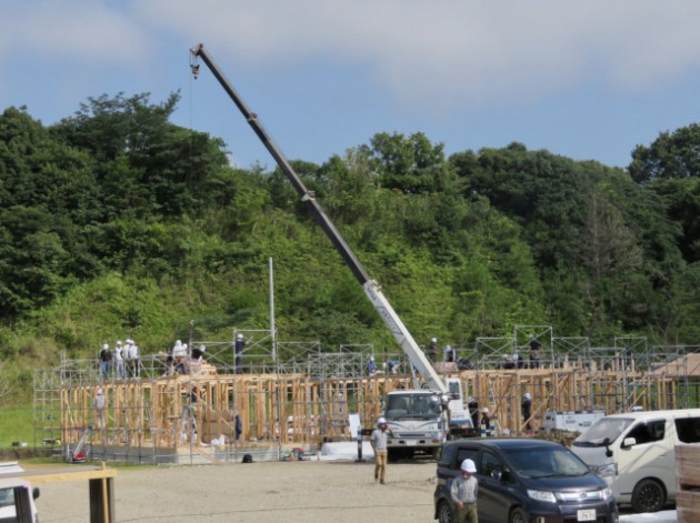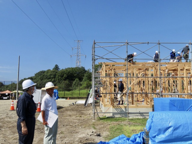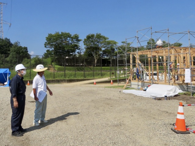 人吉市「被災者用 仮設住宅」建設現場 視察(人吉市 梢山)