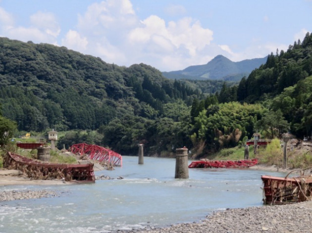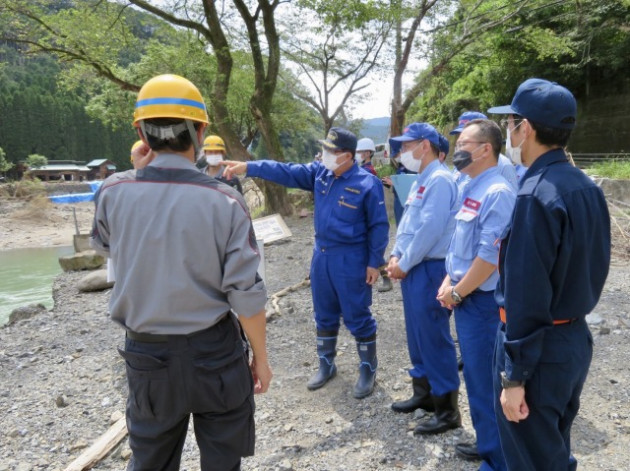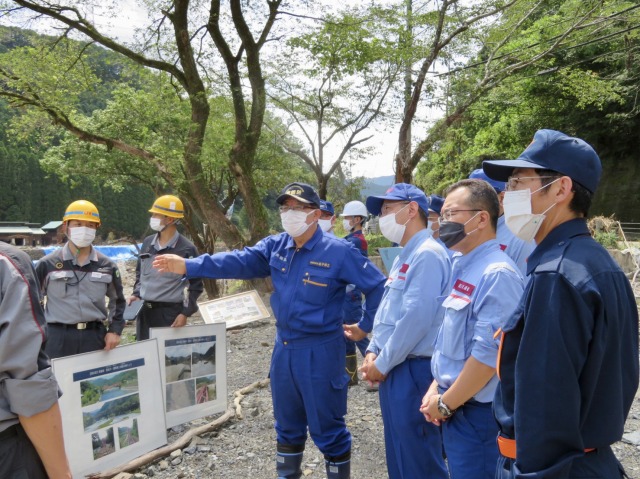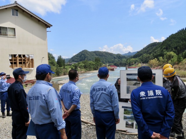 国土交通省・上原鉄道局長「JR九州 肥薩線 被災現場 」視察(球磨村・湯の駅より 落橋した球磨川第二橋梁を視察)に同行