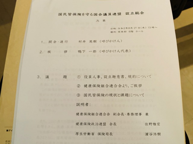 自民党 国民皆保険を守る国会議員連盟「設立総会」